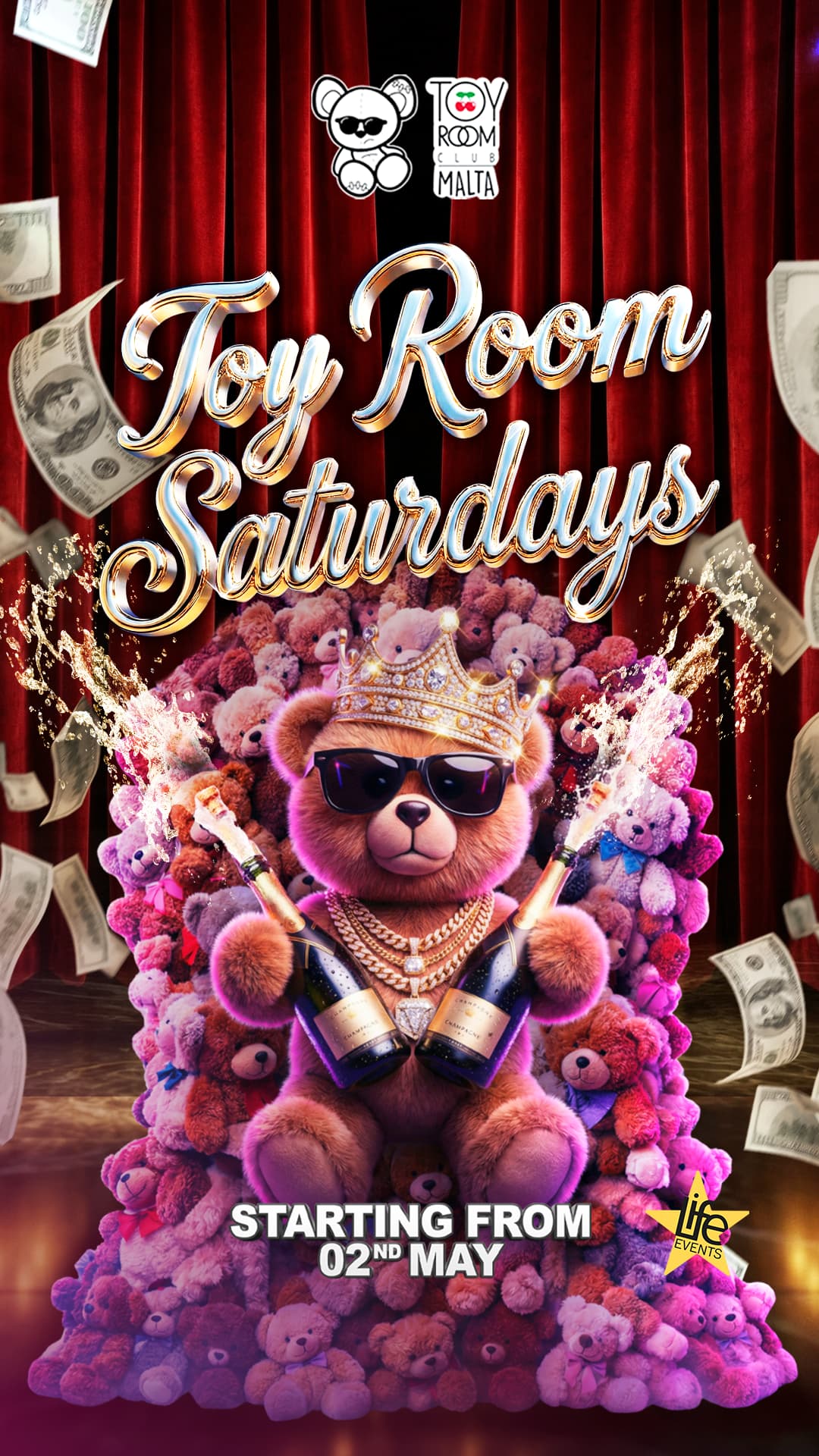 Frank is Toyroom's notorious, party-loving teddy bear, often found front and center leading the wildest nights in Dubai's club scene.